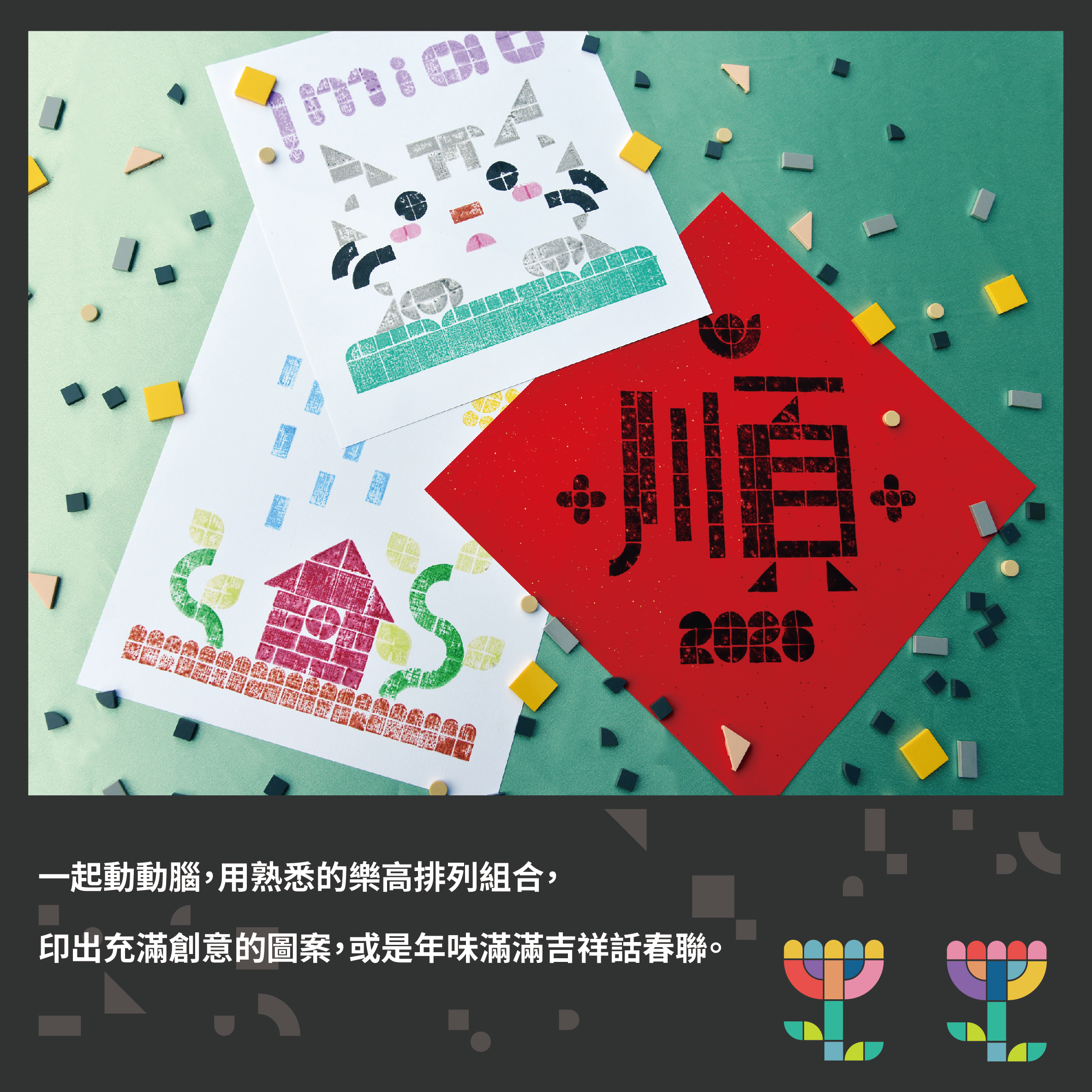 本次寒假特別活動,不但帶來全新典藏展內容和精彩的畫作導覽,還要讓大家腦力激盪,到底用孰悉的樂高積木,能夠排列出什麼樣的神奇圖案?又如何用版畫的方式,把大家的創意保存下來呢?不論是獨具巧思的畫作成品,或是做成年味滿滿的春聯,2026年的寒假,等著您來挑戰。名額有限,快快馬上報名吧!