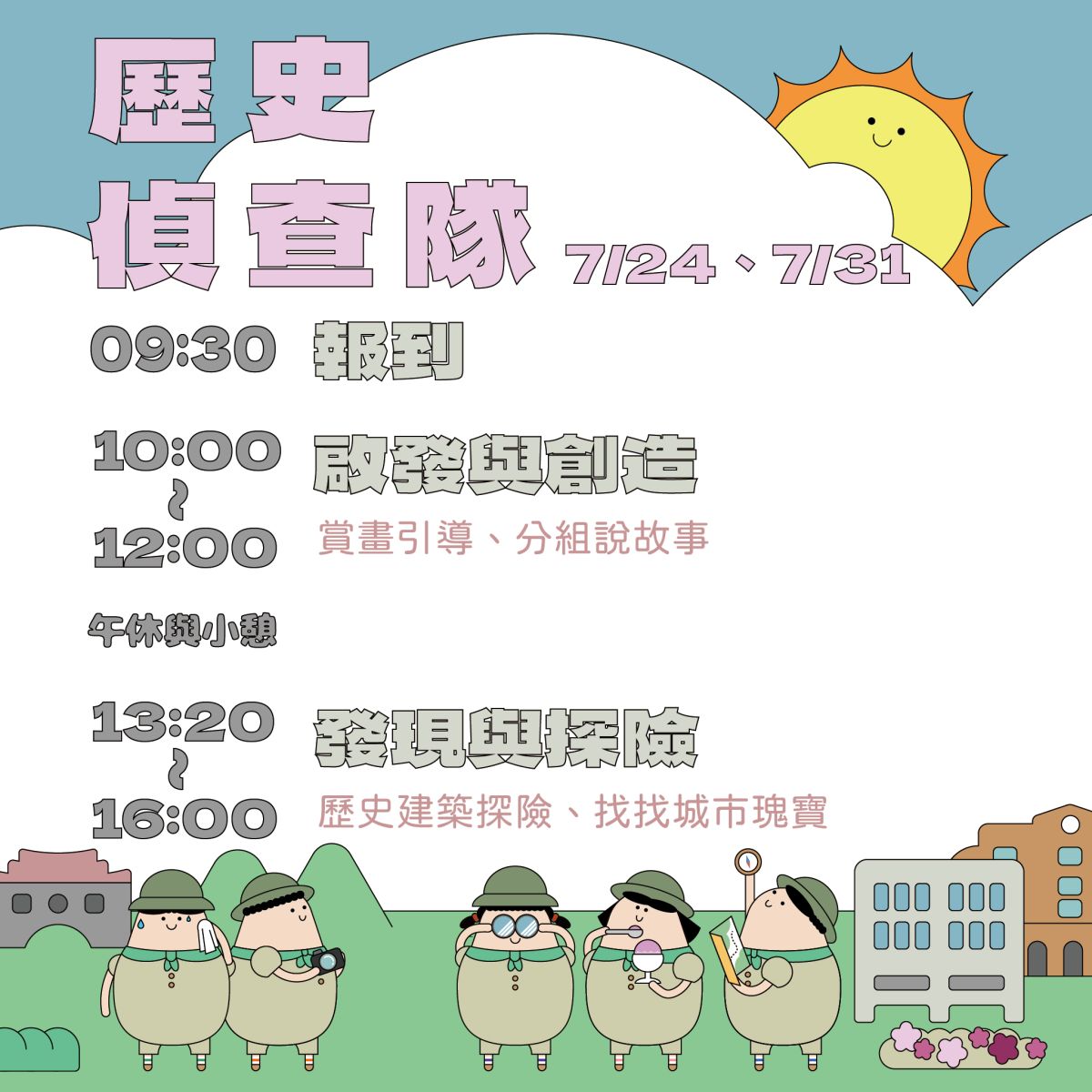 歷史偵查隊:7/24(四)10:00-16:00、7/31(四)10:00-16:00