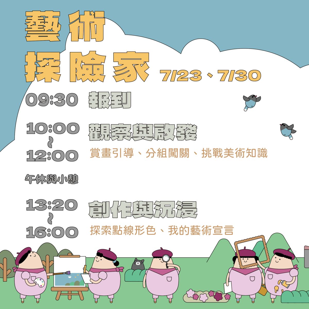 藝術探險隊:7/23(三)10:00-16:00、7/30(三)10:00-16:00