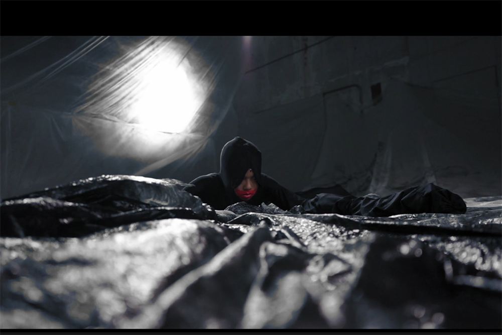 目前展出的作品《#蜘蛛女孩》,藝術家以具哥德風格的類童話表演錄像裝置呈現,表面上是一齣戲劇化的童話寓言故事,但整體作品編演的脈絡建立在舞蹈歷史大敘事裡,是為現代舞蹈的傳奇先驅-洛依.芙樂 (Loïe Fuller) 、「現代舞之母」依莎朵拉.鄧肯(Isadora Duncan)與一名舞蹈系學生林慧瑩蜘蛛舞進行跨時代的對弈。
