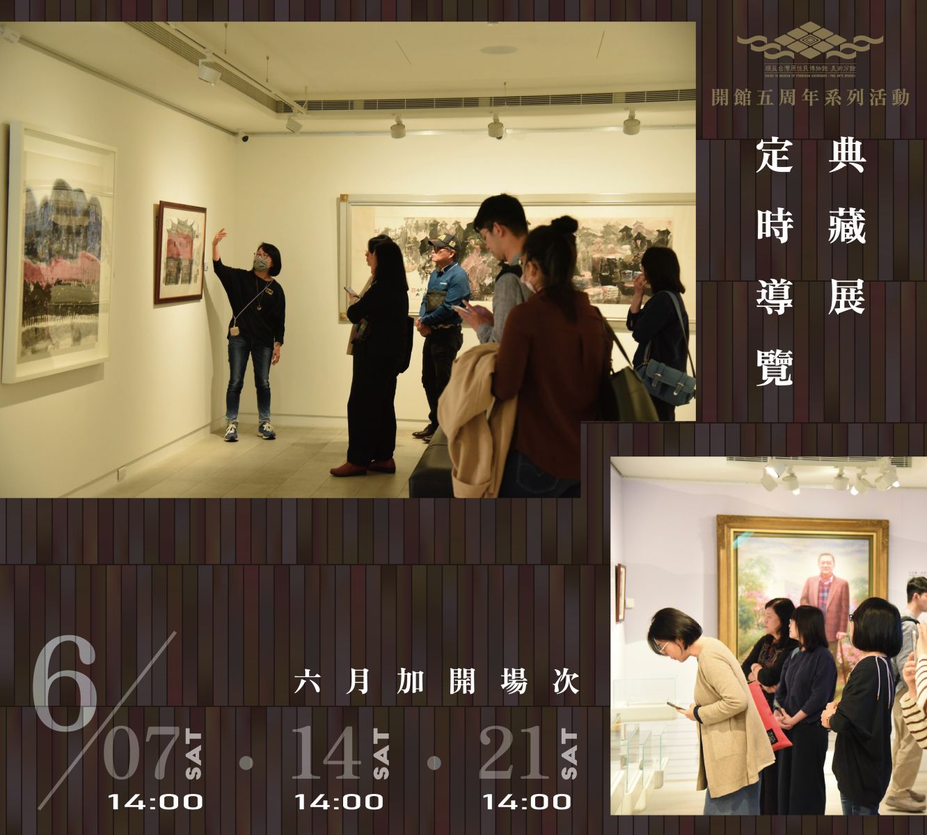 (3) 典藏展定時導覽:下列時段的週六下午2點起:6/7、6/14、6/21。